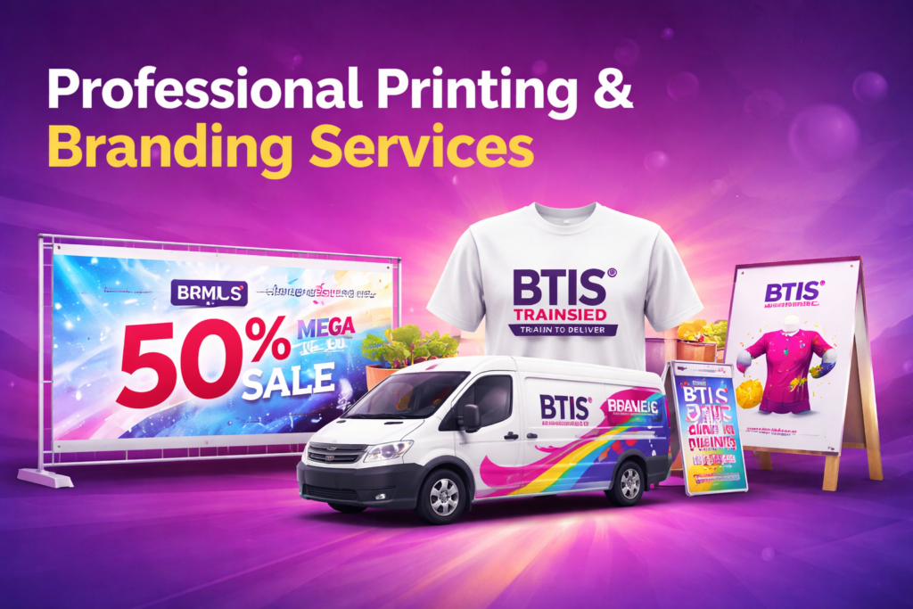 BTIS is a professional printing, branding, and advertising company dedicated to helping businesses stand out, attract attention, and build strong brand visibility. We specialize in delivering high-quality print solutions, creative branding services, and impactful advertising materials that help businesses communicate their message clearly and professionally.